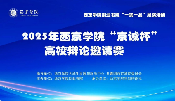 为促进校际学术交流、培养青年思辨精神与社会责任感,由西京学院大学生发展与服务中心和共青团西京学院委员会联合指导、西京学院创业书院主办,鸣创辩论社承办的2025年西京学院“京诚杯”高校辩论邀请赛于2025年5月25日在西京学院图书馆303报告厅成功举办。