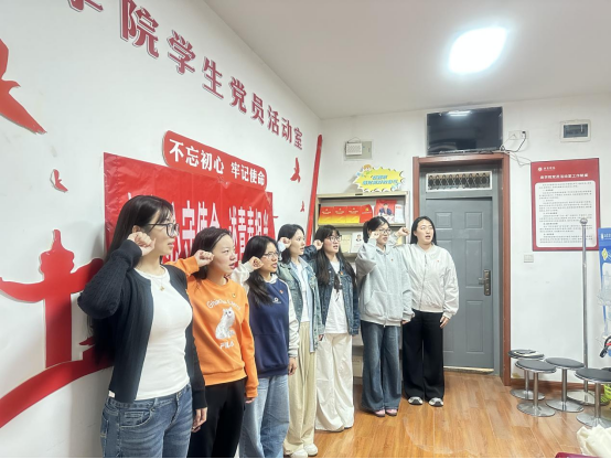 活动伊始,党支部书记郭培说道,初心不是抽象概念,而是具体行动的起点,号召党员通过故事分享与实践规划,让初心“看得见、摸得着”;组织学生党员面向党旗重温入党誓词,铮铮誓言筑牢信仰根基。