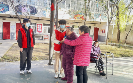 养老院的小院摇身一变,成了温馨的“临时舞台”。学生们精心编排了独唱、合唱、传统拳术等节目:一曲《映山红》勾起老人们珍藏的红色记忆;齐声高唱的《爱我中华》让几位老人不禁红了眼眶;拳术表演更引得他们连声感叹时光流转。表演尾声,志愿者们围在老人身旁,逐字逐句教唱简单歌曲,欢声笑语溢满院落每个角落。