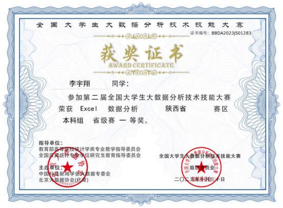 4. 2023年10月获第二届全国大学生大数据分析技术技能大赛省级一等奖;