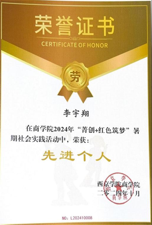 10. 2024年5月荣获西京学院“优秀团干部”;