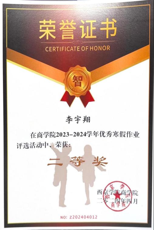 9. 2024年4月获商学院2023-2024学院优秀寒假作业;