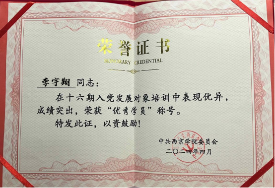 8. 2024年4月荣获十六期入党发展对象“优秀学员”称号;