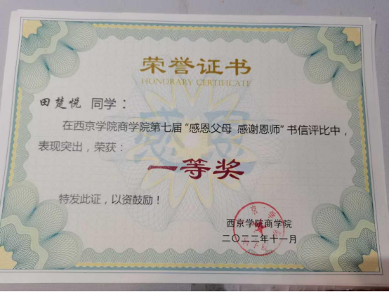 田楚悦,女,中共预备党员,现就读于西京学院商学院大数据管理与应用B2201班。目前第二课堂综合素质学分为318.5分,现已通过计算机二级、英语四级及六级。