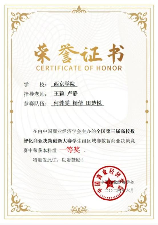 5. 2024年6月获第三届高校数智化商业决策创新大赛学生组全国总决赛本科组二等奖、区域赛一等奖;