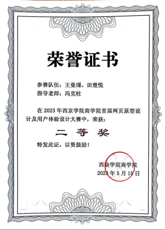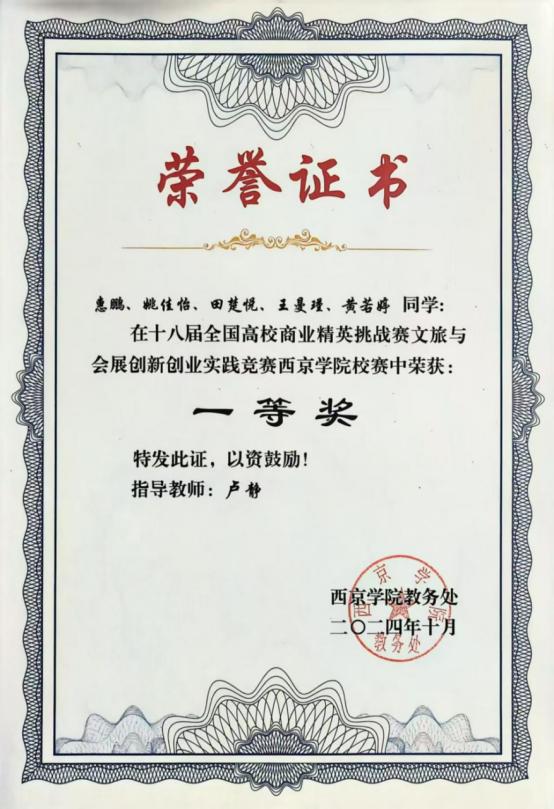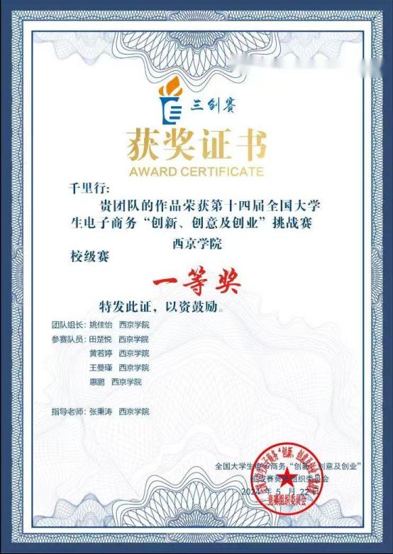6. 2024年8月获第十四届全国大学生电子商务“创新、创意及创业”挑战赛校级一等奖;
