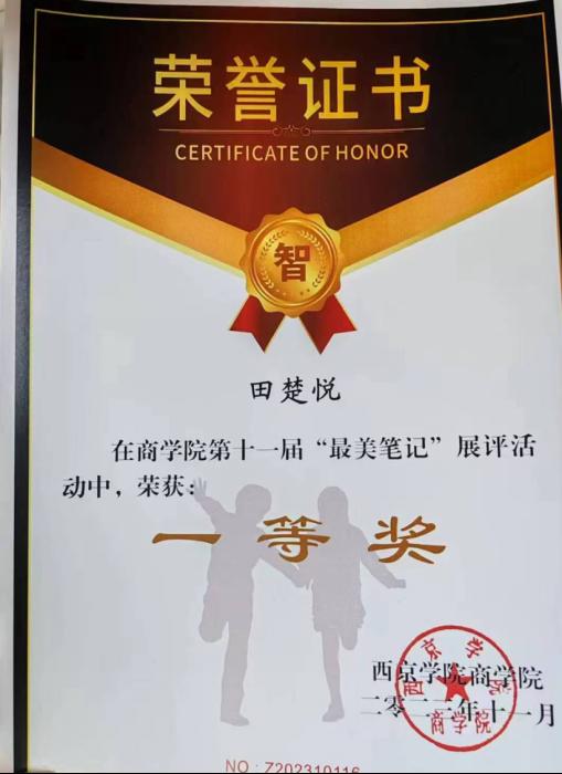 4. 2023年11月获商学院第十一届“最美笔记”展评一等奖;