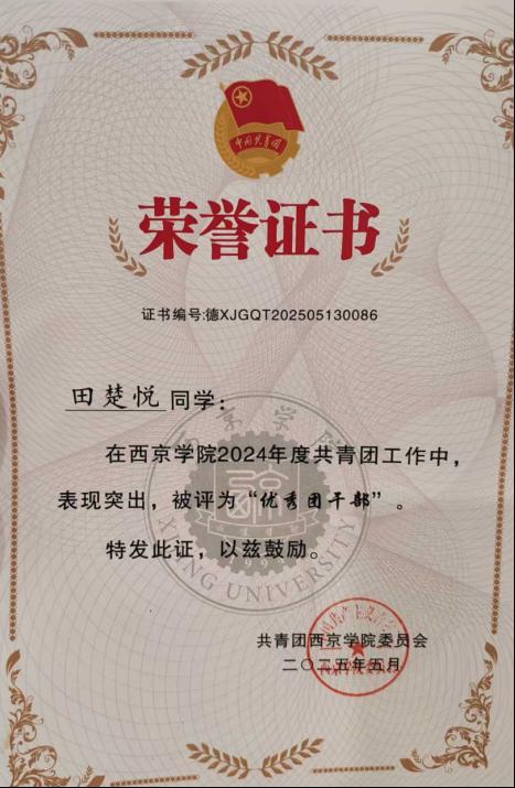 9. 2025年5月获得2023-2024学年校级优秀团干部;