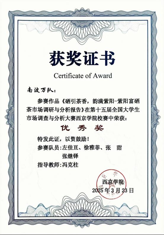 6.2025年3月在第十五届全国大学生市场调研与分析大赛西京学院校赛中荣获优秀奖;