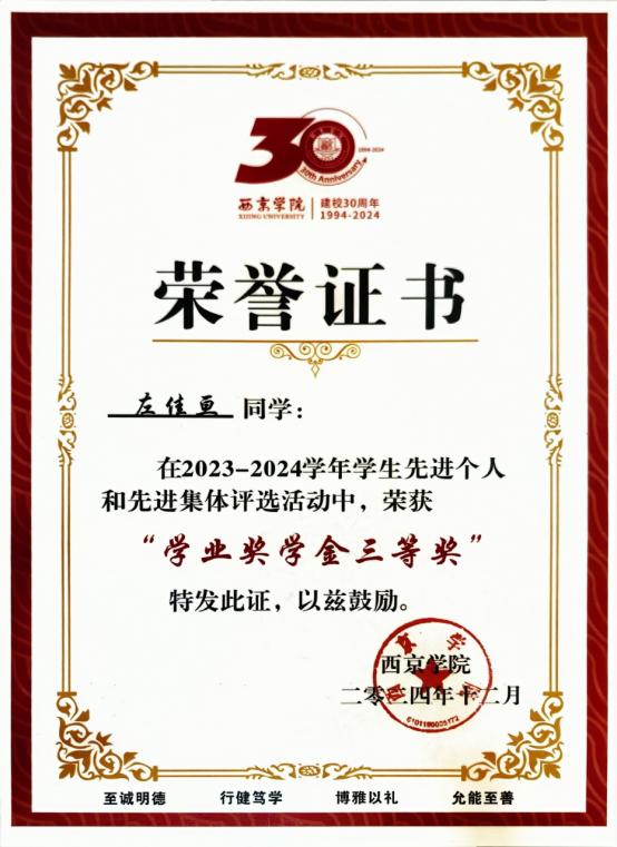 1.2023-2024学年学生先进个人和先进集体评选活动中荣获“学业奖学金三等奖”;