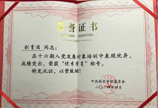 7. 2024年4月荣获十六期入党发展对象“优秀学员”称号;