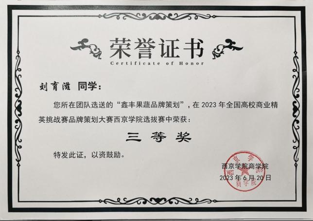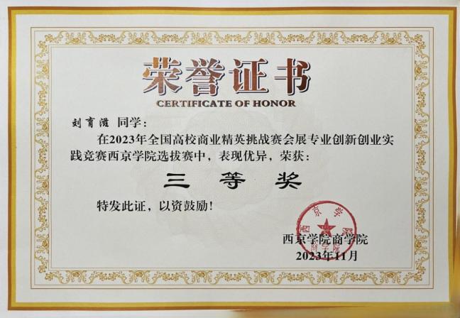 5. 2023年11月获全国高校商业精英挑战赛会展专业创新创业实践三等奖;
