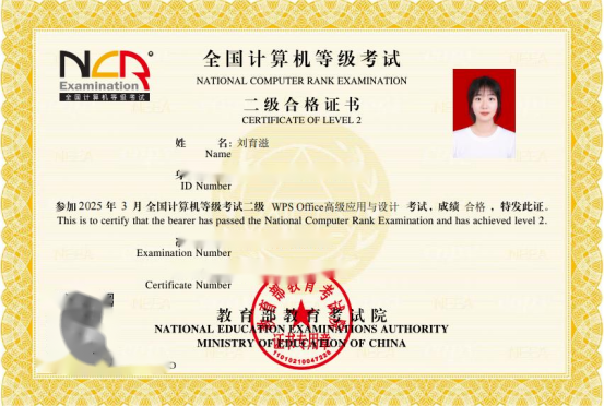 13. 2025年5月获全国计算机二级证书。