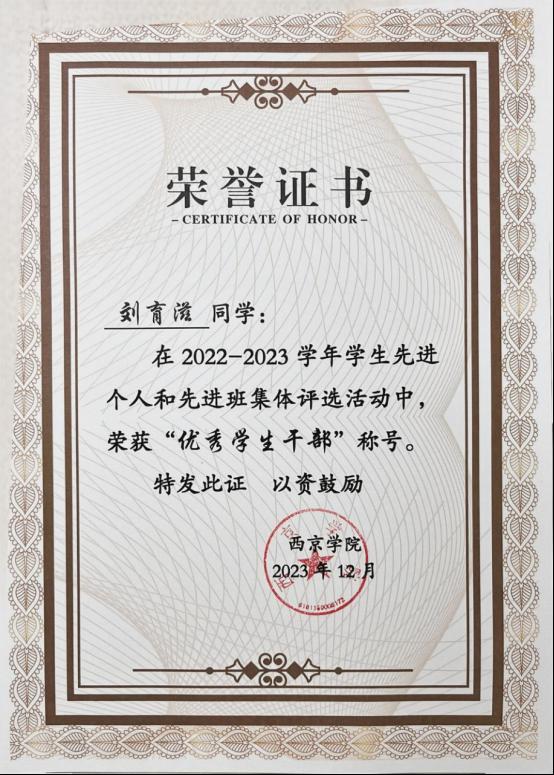 6. 2023年12月荣获2022-2023学年“优秀学生干部”称号;