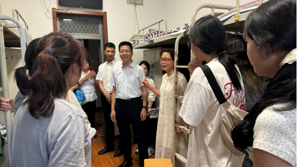 8月17日下午16点30分,副校长王正斌、西安华煜高校后勤服务有限公司总经理唐娣芬、西京学院商学院院长秦效宏、西京学院商学院副院长赵文杰、商学院学生科科长惠媛、商学院辅导员刘艳、丁龙走访新生宿舍,并给新生带去了温暖。